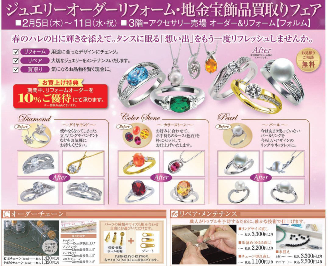2026年2月5日(木)~11日(水)『 ジュエリーリフォームフェア』 上大岡京急百貨店 3階 オーダー&リフォーム フォルム
