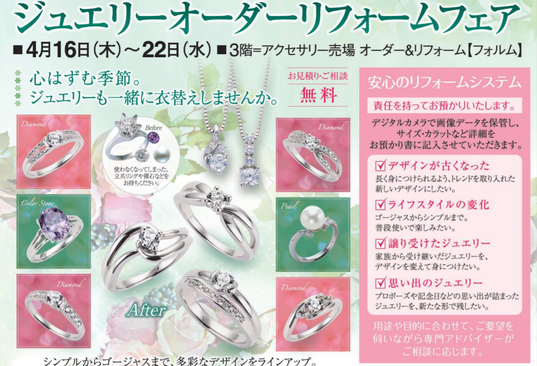 2026年4月16日(木)~22日(水)『ジュエリーオーダーリフォーム・地金宝飾品買取りフェア』 上大岡京急百貨店 3階 オーダー&リフォーム フォルム