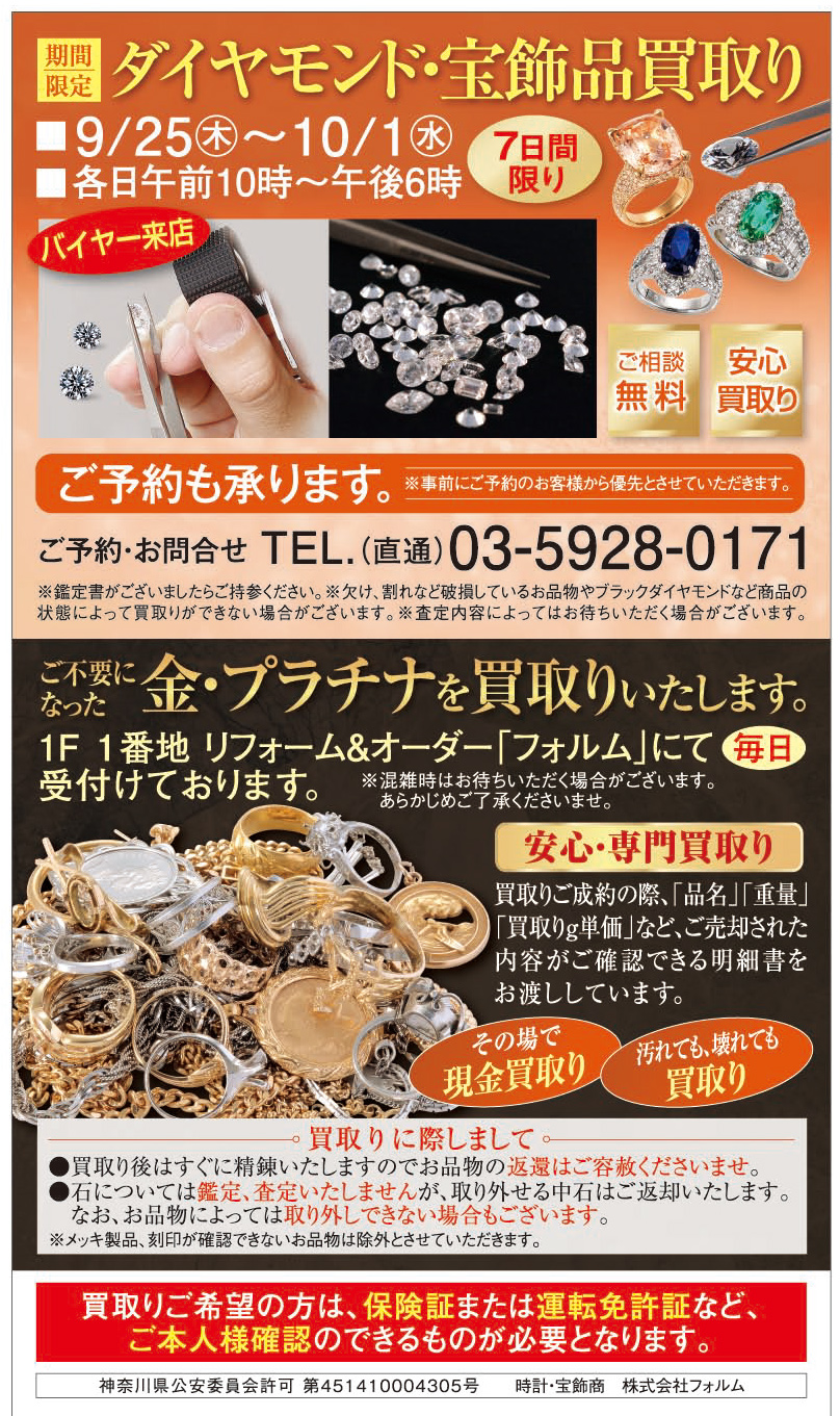 2025年9月25日(木) ~10月8日(水)ジュエリーリフォームフェア/東武百貨店池袋店1F1番地 リフォームコーナー「フォルム」