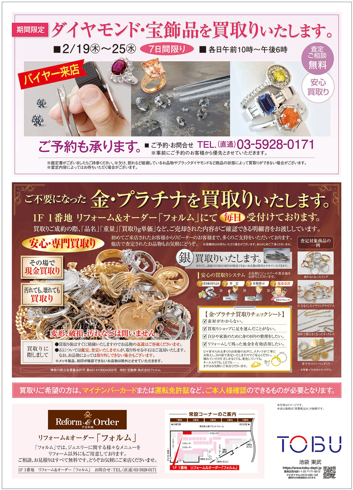 2026年2月19日(木) ~3月4日(水)ジュエリーリフォームフェア/東武百貨店池袋店1F1番地 リフォームコーナー「フォルム」
