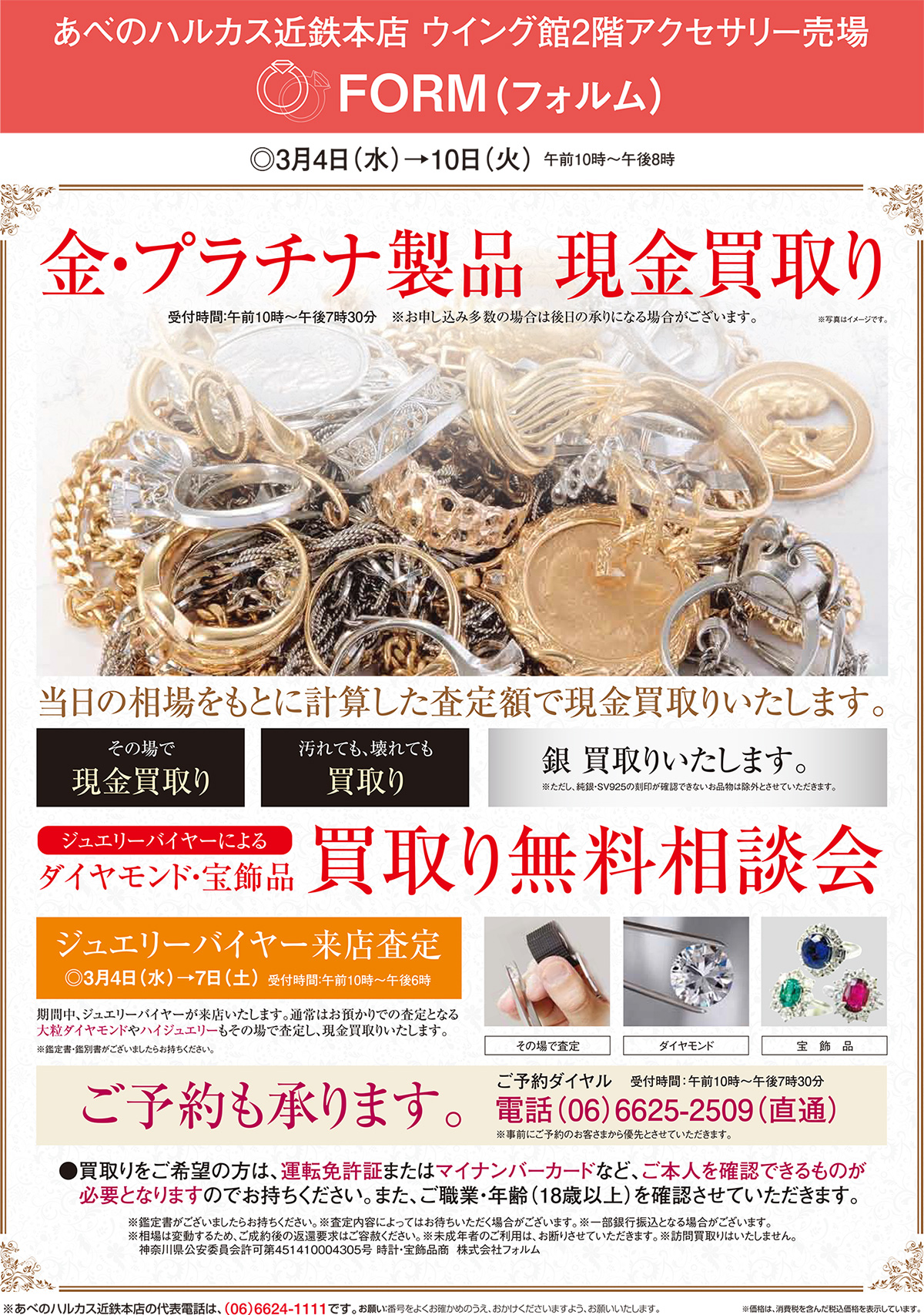2026年3月4日(水)〜10日(火)ジュエリーリフォームフェア|あべのハルカスウィング館2階アクセサリー売り場