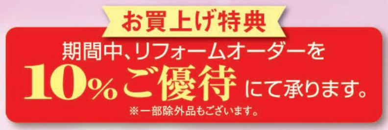 期間中、リフォームオーダーは10%ご優待にて承ります。