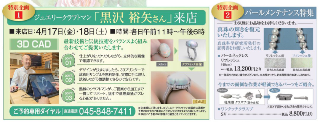 【特別企画1】ジュエリークラフトマン黒沢裕矢さん来店〜ご提案お見積り無料〜